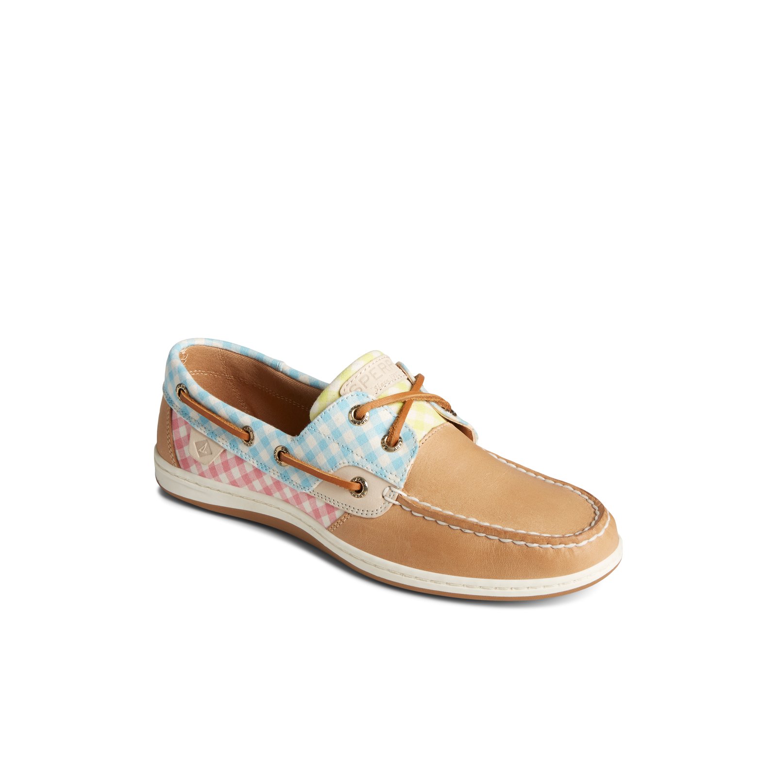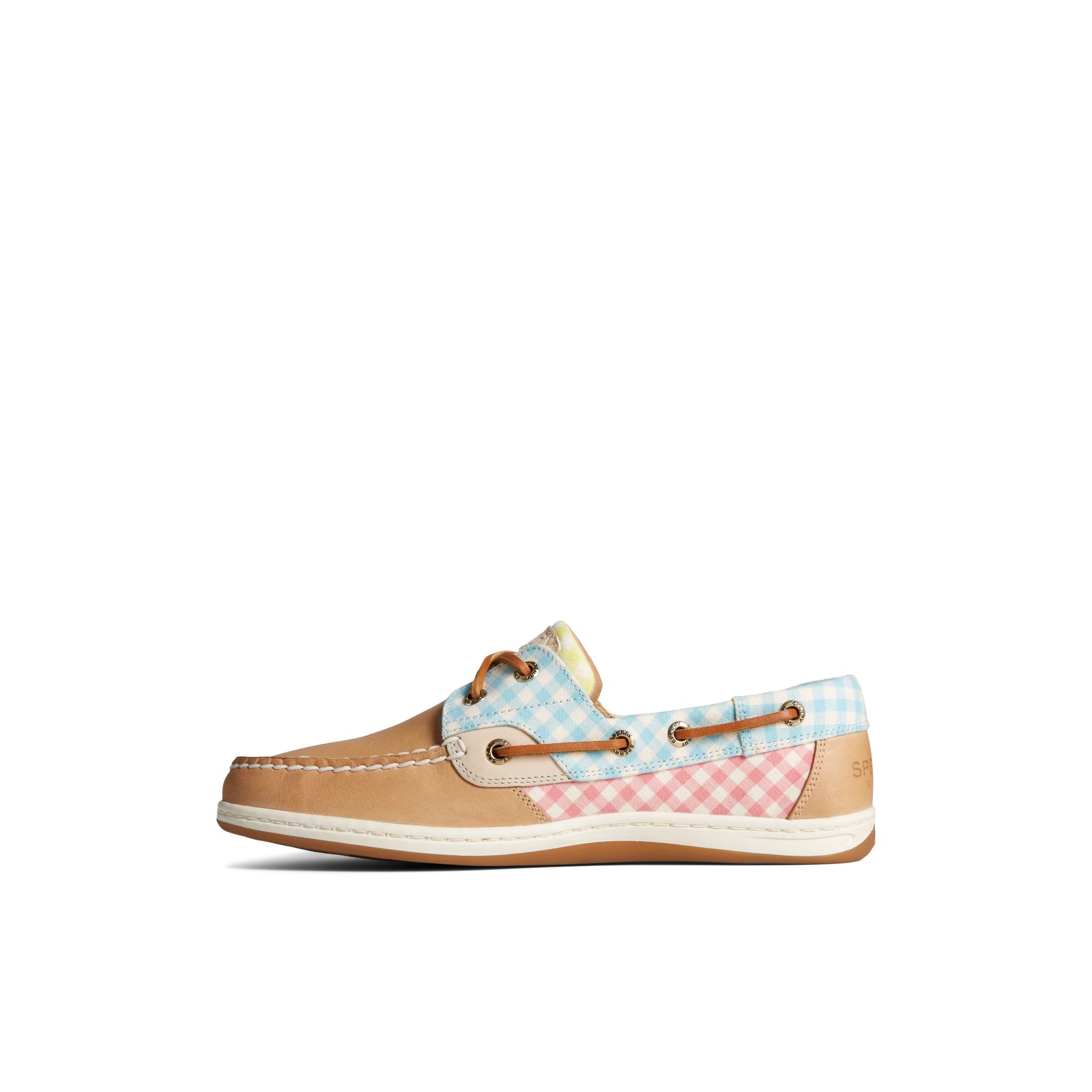 The Koifish Gingham Boat Shoe brings a playful take to a classic silhouette. These boat shoes feature a predominantly leather upper, with canvas gingham detailing that adds a pop of color that’s sure to stand out whether worn on deck or on the beach. 360° Lacing and a Wave-Siping sole add stability and traction, so you can handle whatever life throws at you.Materials